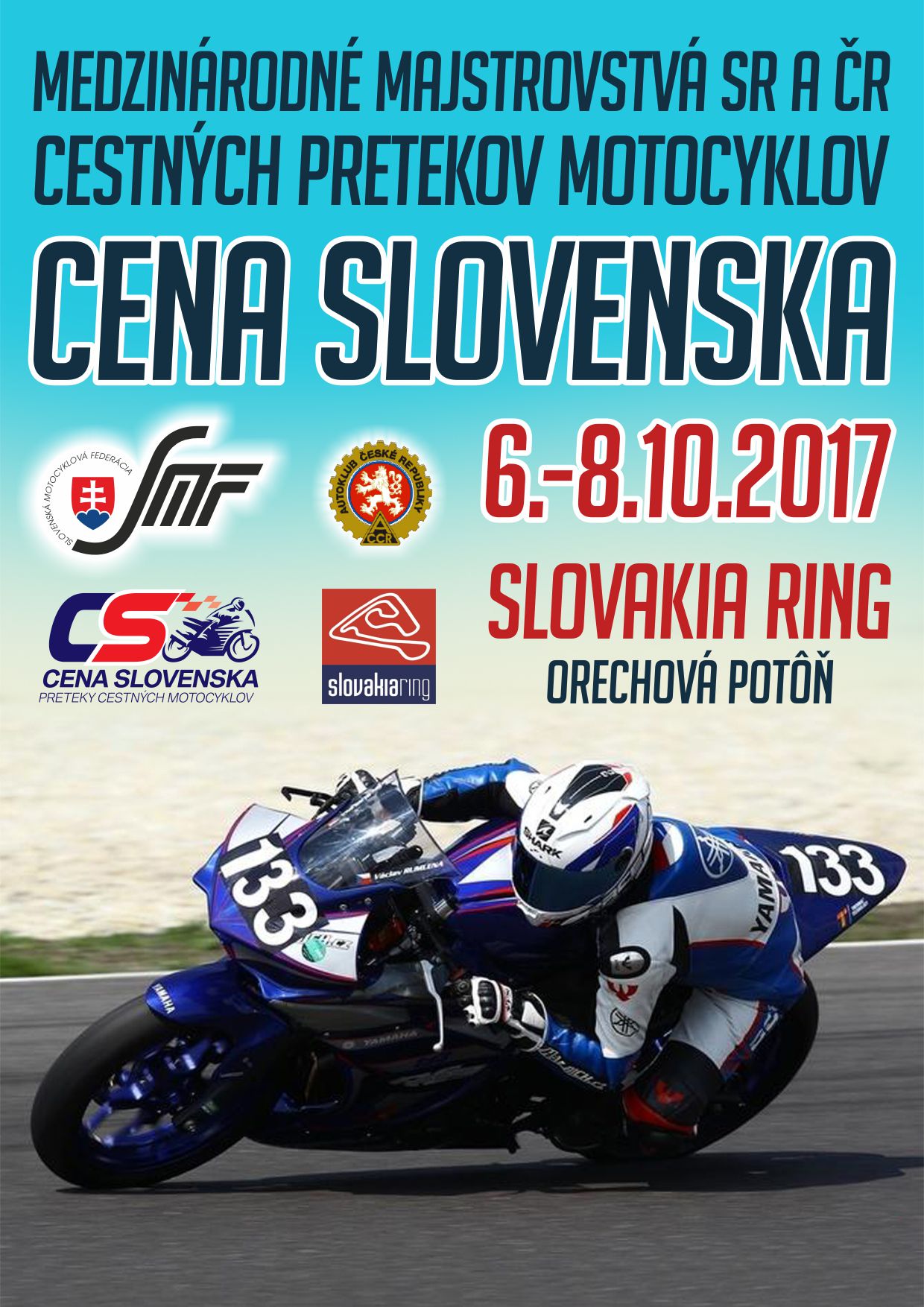 Srdečne Vás pozývame na záverečné trojdňové podujatie majstrovstiev Slovenskej republiky a Českej republiky cestných motocyklov, ktoré sa uskutoční v dňoch 6.-8. októbra 2017 na Slovakia Ringu. Okrem bojov o body a tituly majstrov republiky sa Vám ponúka možnosť rozlúčiť sa s uplynulou sezónou v kvalitnej konkurencii za výhodnú cenu!