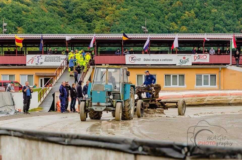 Bohužiaľ predpovede sa naplnili a aj napriek snahe o úpravu dráhy pred samotným pretekom sa podujatie začalo slávnostným nástupom a nakoniec sa tým nástupom aj skončilo, keďže počas nástupu sa intenzita dažďa zvýšila a predpovede počasia aj naďalej neboli priaznivé. Po nástupe sa konalo zasadnutie JURY za účasti všetkých jazdcov, kde bola prehodnotená aktuálna situácia, predpovede počasia a rozhodnutie všetkých jazdcov bolo preteky ani nezačínať. S týmto rozhodnutím sa stotožnili aj činovníci a tak padlo nepopulárne rozhodnutie a to preteky ukončiť.